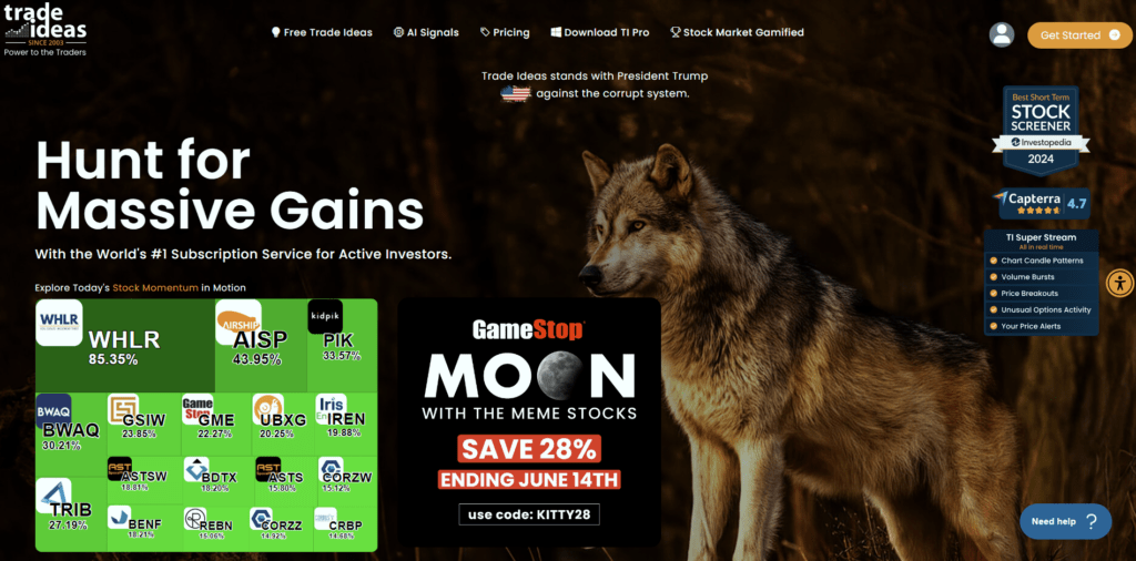 Trade Ideas is a leading AI-powered trading platform renowned for its advanced stock scanning and trade idea generation capabilities. Its AI engine, Holly, conducts over a million simulated trades every night, optimizing trading strategies for the following day. This platform offers real-time market analysis, backtesting features, and comprehensive educational resources.