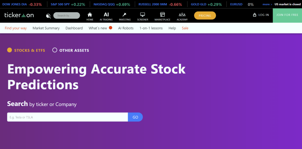 Tickeron is an AI-driven platform that provides traders with actionable insights through pattern recognition and predictive analytics. It offers a range of tools for both novice and experienced traders, including AI trend predictions, market scans, and real-time trading signals. Tickeron’s AI algorithms analyze vast amounts of data to identify profitable trading opportunities.