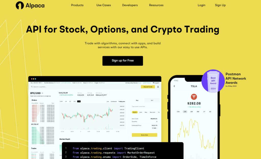 Alpaca is an AI-powered trading platform that provides commission-free trading and an open API for algorithmic trading. It offers robust data feeds, real-time market updates, and AI-driven trading signals. Alpaca is particularly popular among developers and quantitative traders who want to create and deploy their own trading algorithms.