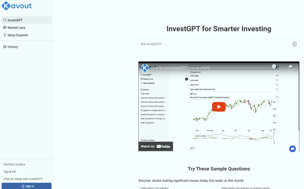Kavout leverages AI to provide traders with predictive analytics and stock rankings through its proprietary Kai Score. The platform analyzes financial data, news, and market trends to generate accurate stock ratings and trade recommendations. Kavout’s user-friendly interface and powerful AI tools make it a valuable resource for individual and institutional traders alike.
