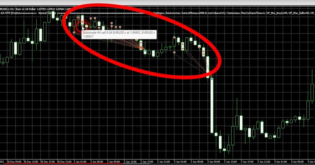 The EA relies on mean reversion—the assumption that price will eventually reverse and rescue losing positions. This works… until it doesn’t. During strong trending markets (like we saw in 2022-2023), this strategy fails spectacularly.