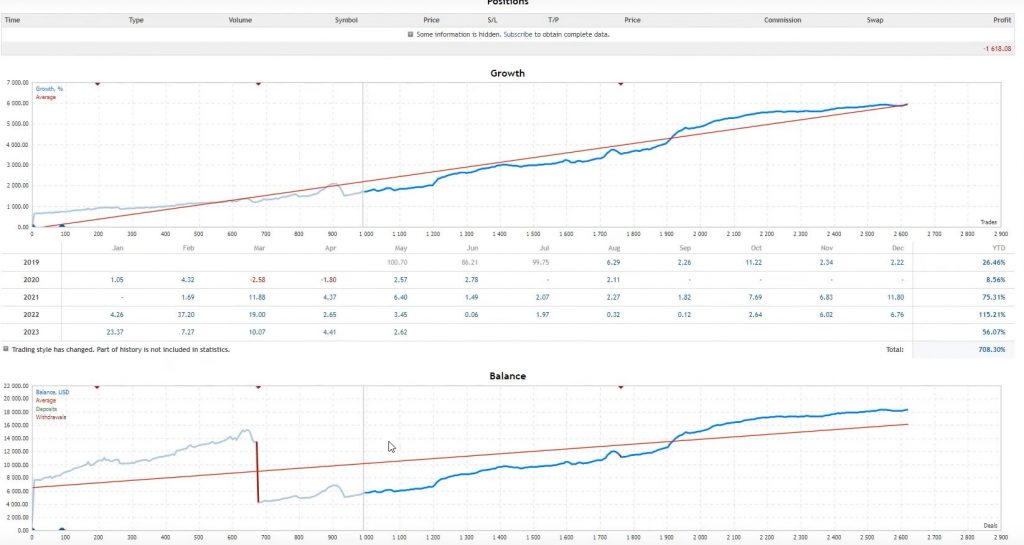 Next, let’s evaluate the performance of the Bonnitta EA. Starting from 2019, we can see some signals but a noticeable absence of reviews, which is a concerning aspect. However, an in-depth analysis reveals impressive yearly profits, especially in 2022, with returns exceeding 100%. These results are confirmed by conducting backtests on MetaTrader. Nonetheless, the absence of reviews raises suspicions and warrants a closer look at user experiences.