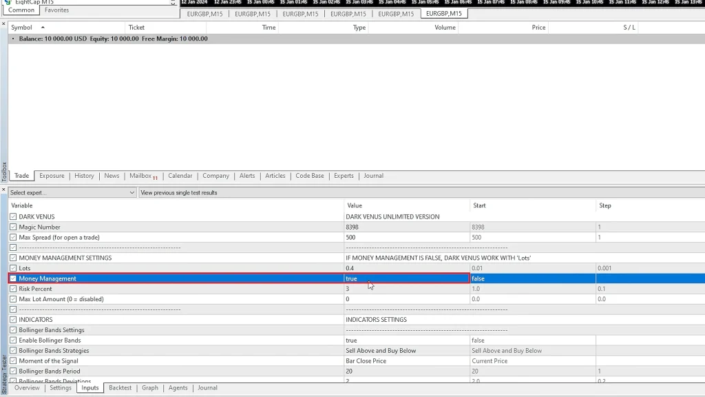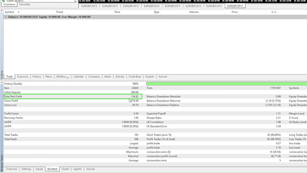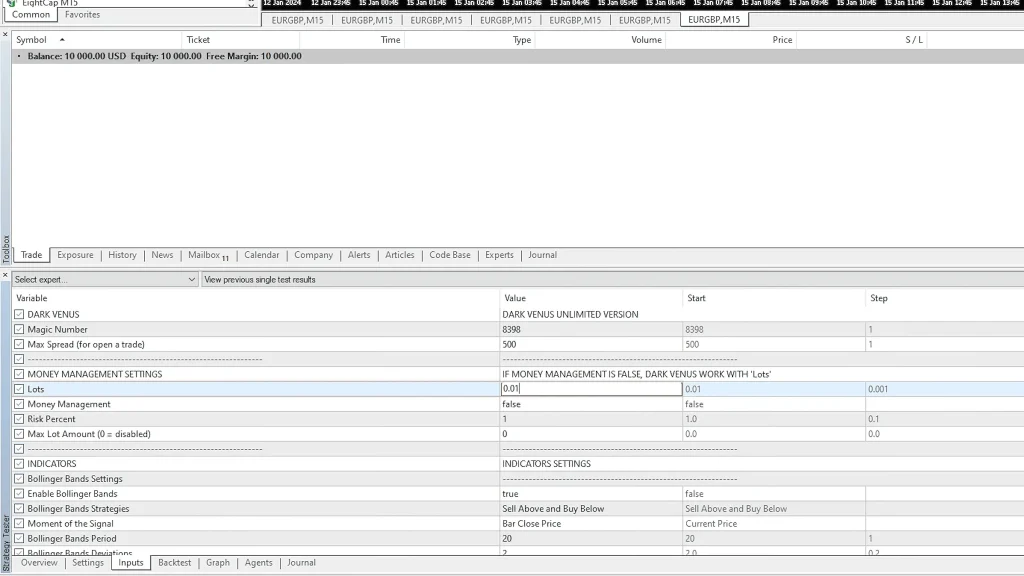 When sharing settings and results, I want to be precise about what I tested. These configurations work for EUR/GBP M15 based on my backtests. Applying them elsewhere is your decision, but don’t assume identical performance.
