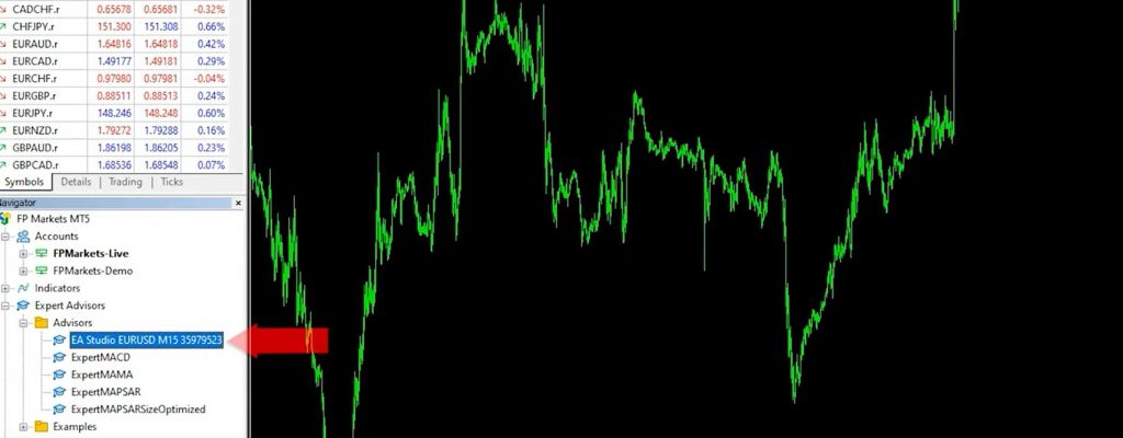 To use the Expert Advisor on a chart, simply drag and drop it onto the desired chart. A window with input settings will appear. Review and adjust the inputs as needed, then click “OK” to apply the changes. A recent update from EA Studio allows you to see the indicators directly on the MetaTrader chart when exporting the Expert Advisor, which enhances the user experience.