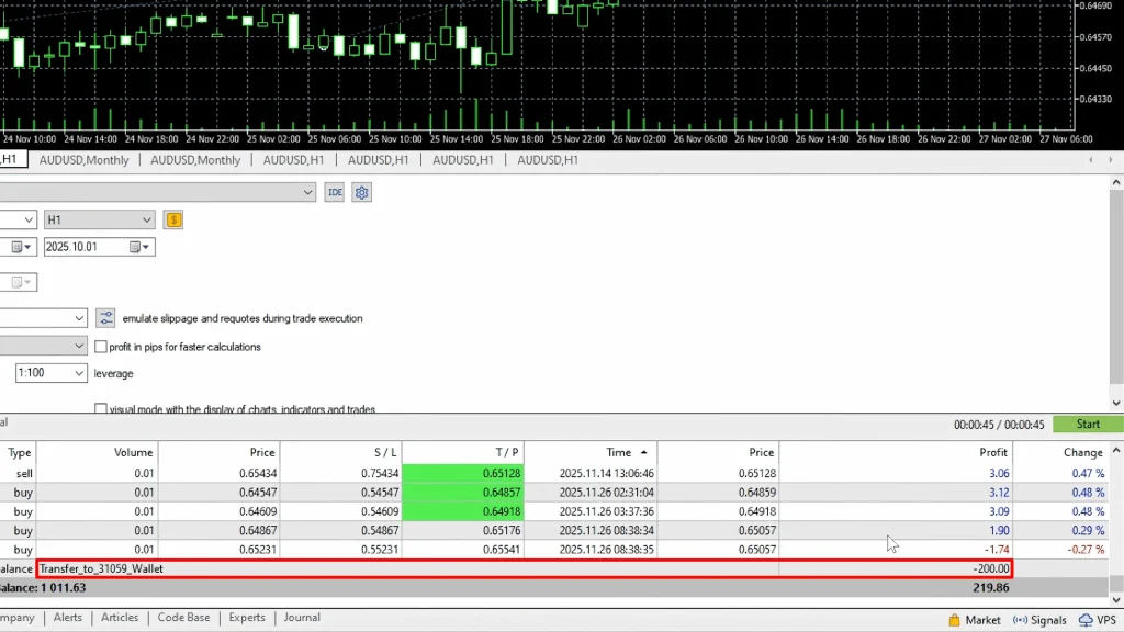That $200 withdrawal is visible on the FX Blue chart as a noticeable drop in the balance line, but it’s not a loss; it’s profit extraction. After six months of watching this EA trade, generating consistent returns, and maintaining controlled risk, I felt confident enough to pull out 20% of the account.