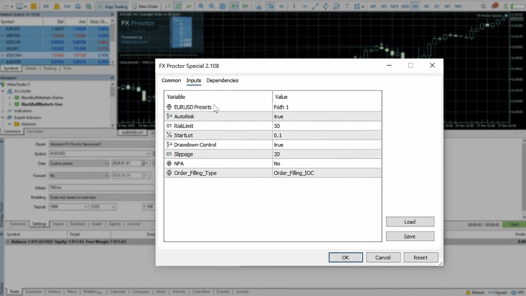 FX Proctor EA specializes in AUD/USD (the Australian dollar), though upgraded versions exist for multiple currency pairs. The strategy uses a broad timeframe filter to identify market context and trend direction, then executes orders on the H1 timeframe. It’s essentially a plug-and-play system, with minimal settings to configure, straightforward to deploy, and so far at least, reliably profitable.