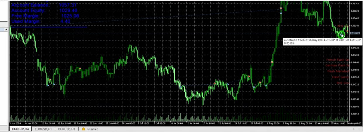 Happy Brexit EA’s trading strategy is relatively conservative. It doesn’t operate as a fast-moving scalper; instead, it identifies strategic entry points on the H4 chart. This selective approach reduces the number of trades but carefully times each one to avoid excessive market noise and volatility.