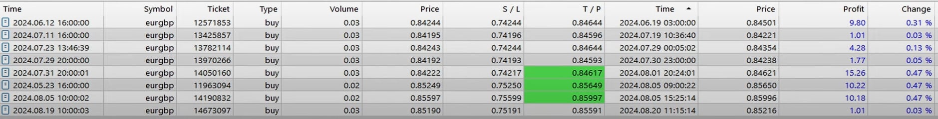 • Stop-Loss and Take-Profit: Each trade is managed with preset stop-loss and take-profit levels.