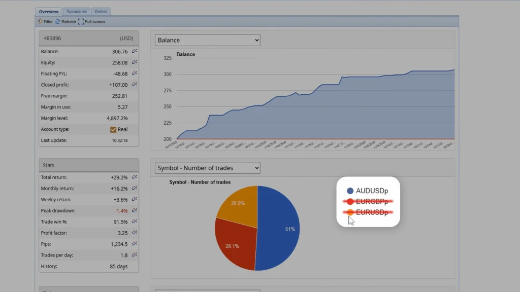• Proven long-term results: The vendor’s 340% gain over 18+ months isn’t theoretical; it’s verified by MyFXBook data.