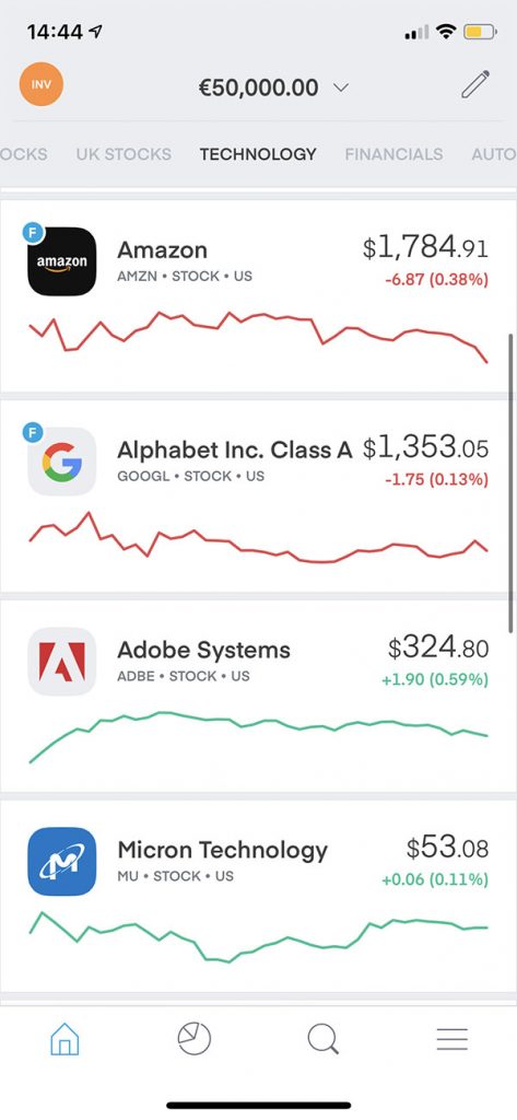 The Trading 212 app is very easy to use. You can easily search for stocks to buy by category. For example, they have a popular stocks category. That shows you which stocks are frequently traded.
