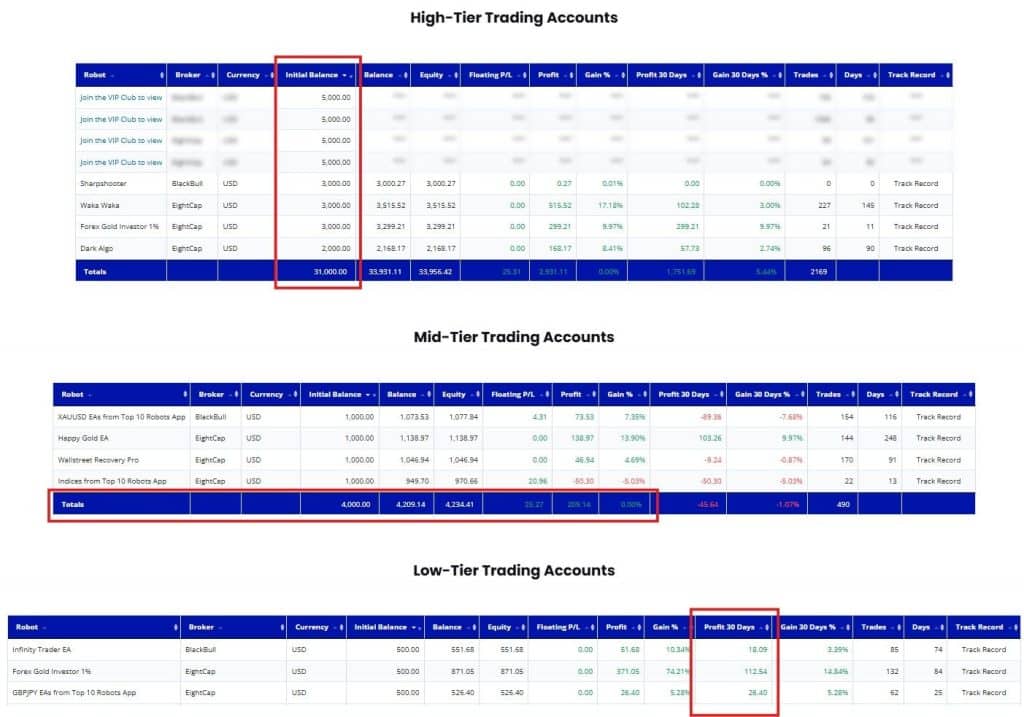 • The Top 10 Robots App – Displays the best-performing EAs across different timeframes and asset classes.