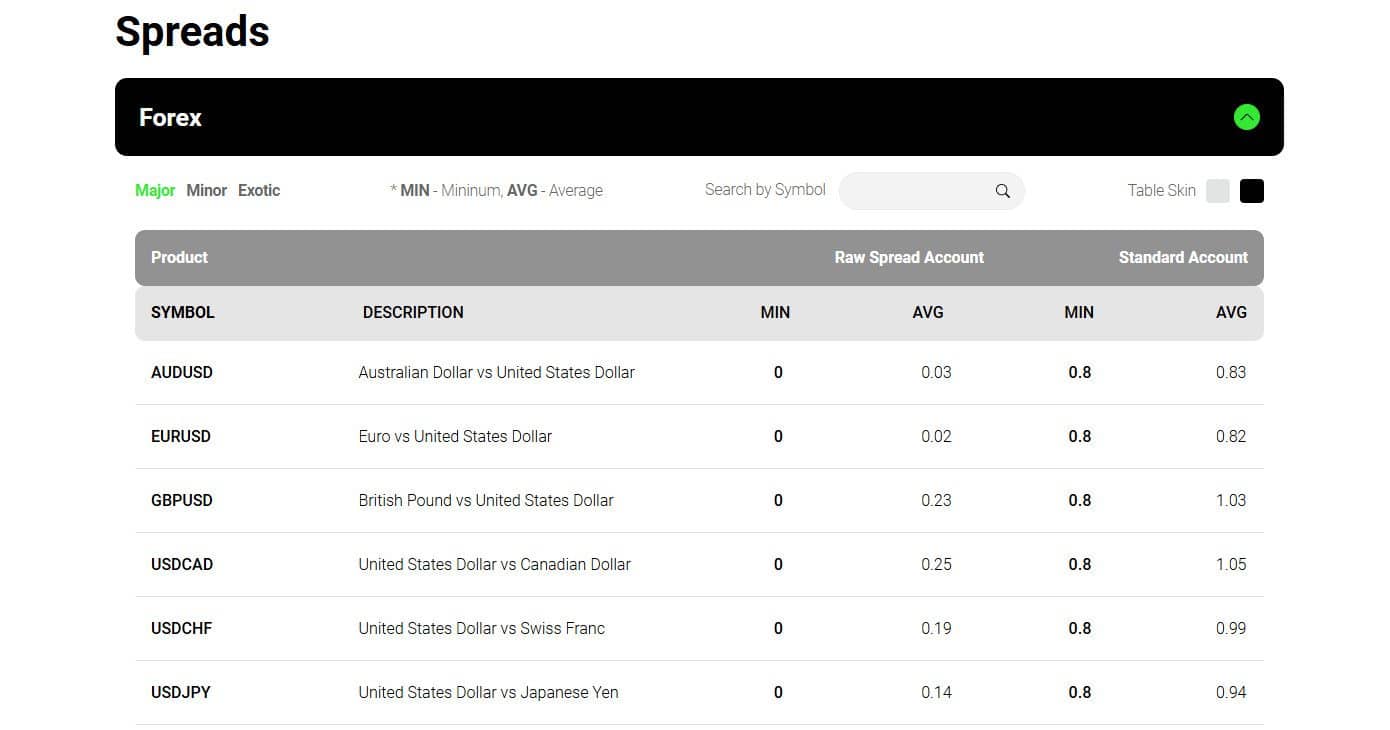 Forex represents the primary market offering, with over 60 currency pairs available. These include majors, minors, and exotics. Spreads start at 0.0 pips, and trading operates 24/5 with standard liquidity and execution.