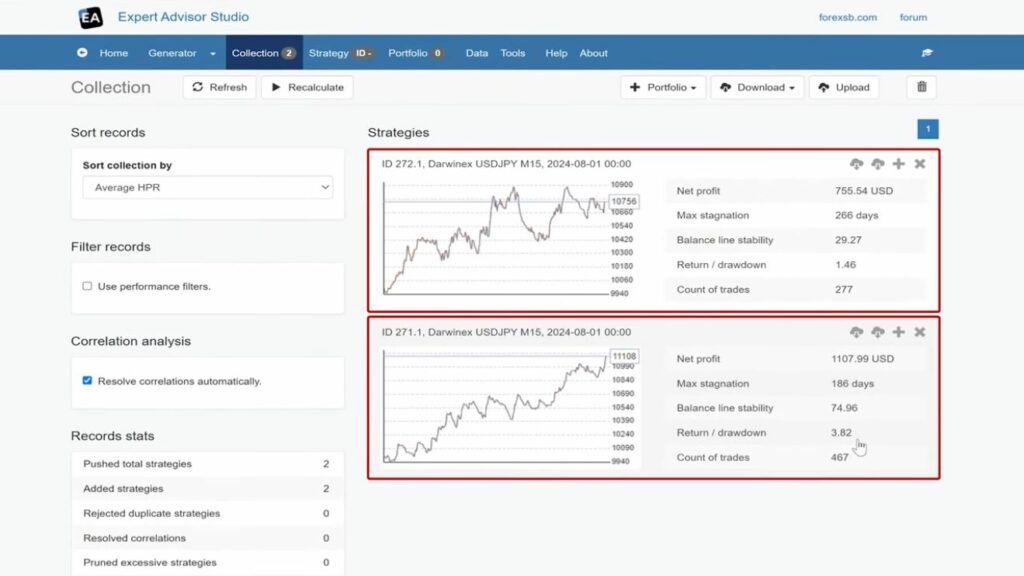 By adjusting these filters, you can reduce the collection to the best-performing strategies that meet your criteria for a moving average crossover strategy. And you can now download the collection.