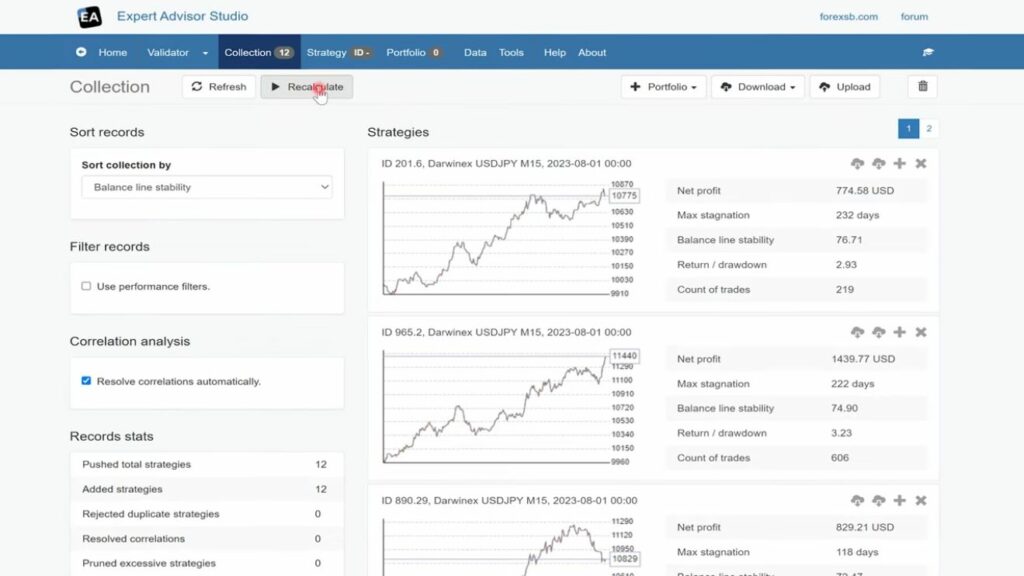 - Balance Stability: Adjust balance stability to ensure strategies have been consistently profitable. We have set a minimum balance stability of 60 here.