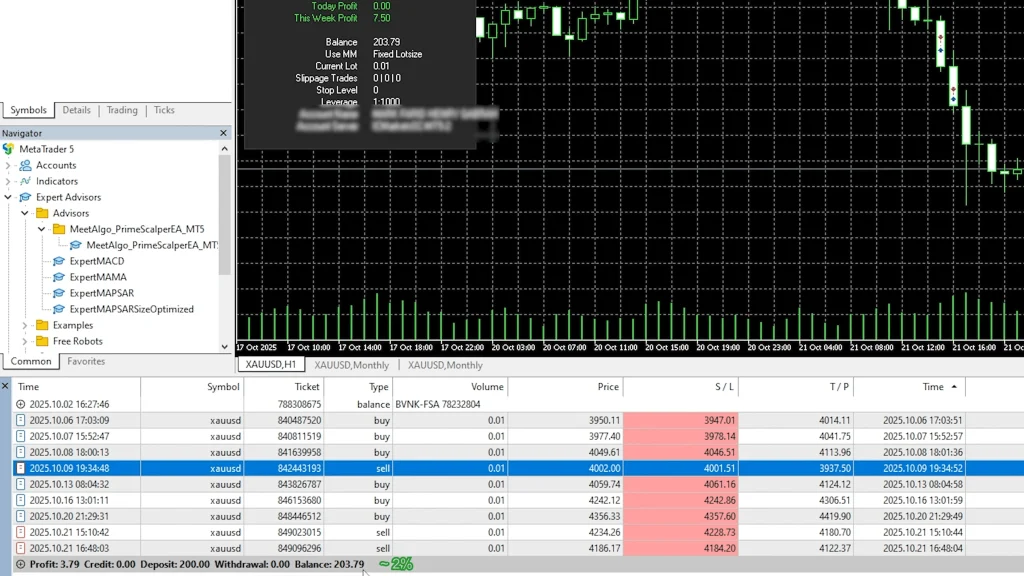 But here’s what caught my attention about Prime Scalper EA: it doesn’t use any of those dangerous martingale or grid strategies that eventually blow up accounts. Instead, it uses proper stop losses, holds positions for mere seconds (literally 10-42 seconds in most cases), and has generated approximately 2% profit in just a couple of weeks on my $200 live account with IC Markets.