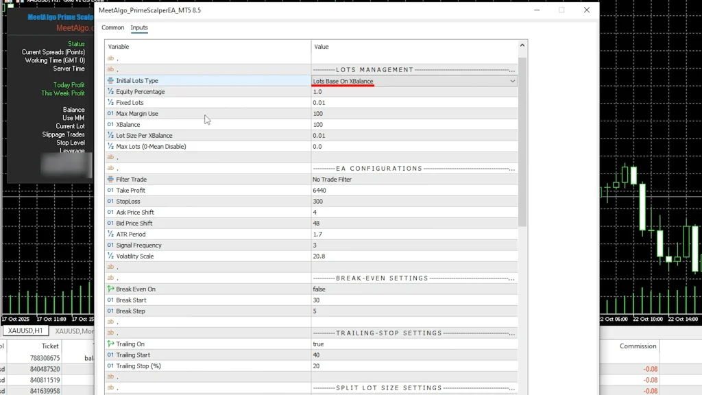 This is where vendor-provided set files become valuable. MeAlgo provides multiple configuration files for different assets and risk levels on its website, giving you tested starting points rather than forcing you to optimize from scratch.