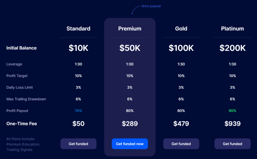 • Premium: $50,000 to trade with, 80% profit for you.