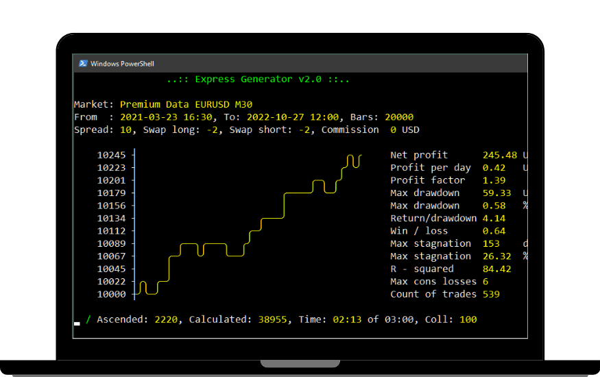 Already comfortable with EA Studio's online generator? Express Generator multiplies your output by running offline at 3-4x the speed. Generate collections in the background while you review and export strategies in EA Studio. Import completed collections directly without format conversion or compatibility concerns.