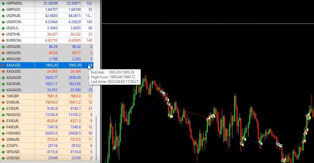 When you start trading gold, it’s important to check the commissions and spreads offered by your broker. You can do this by checking the platform itself. Right-click on the toolbar where you see the time, price, swap, and comment, and check on commissions. You can also check the spread on the market watch. If you don’t see either of these options, they may not be visible, so make sure to right-click and check.