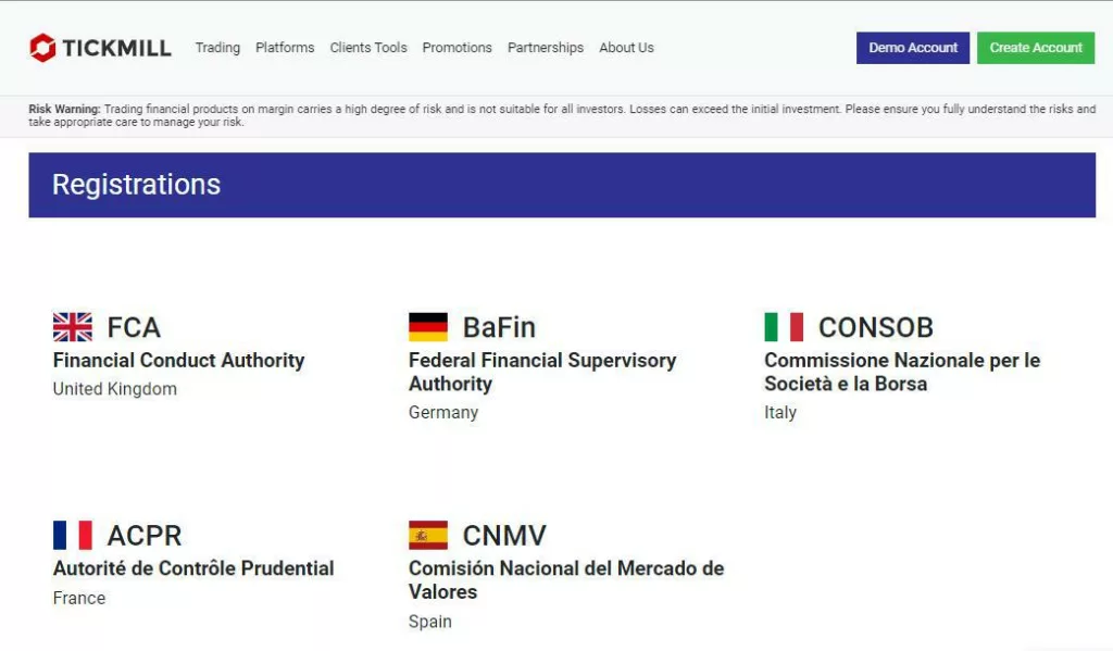 In addition to he regulatory bodies mentioned above, Tickmill is also regulated by the ACPR in France and the Financial Sector Conduct Authority (FSCA) in South Africa.